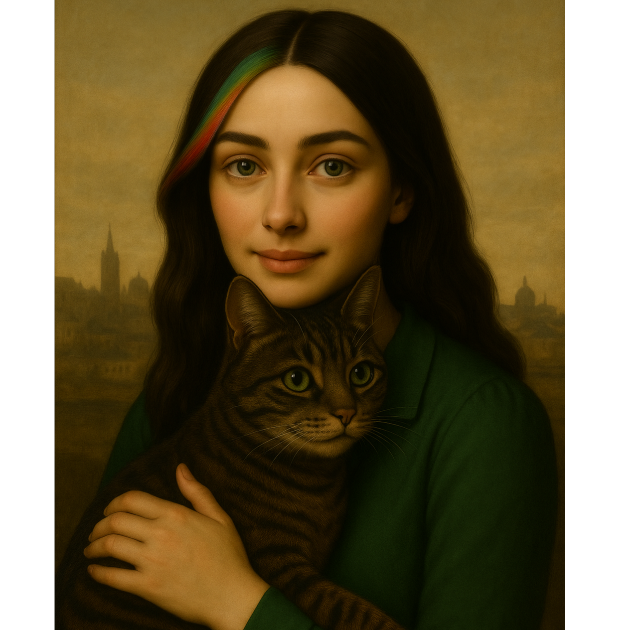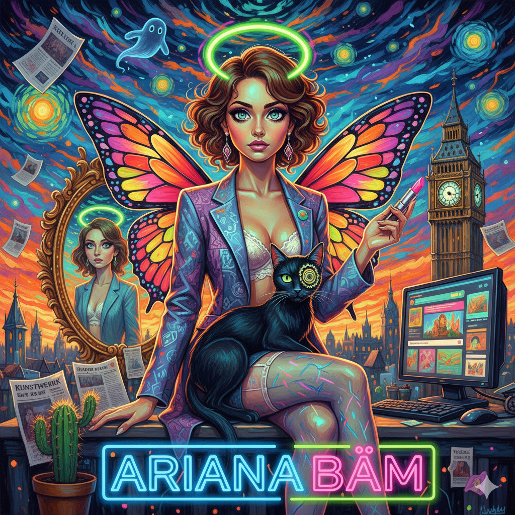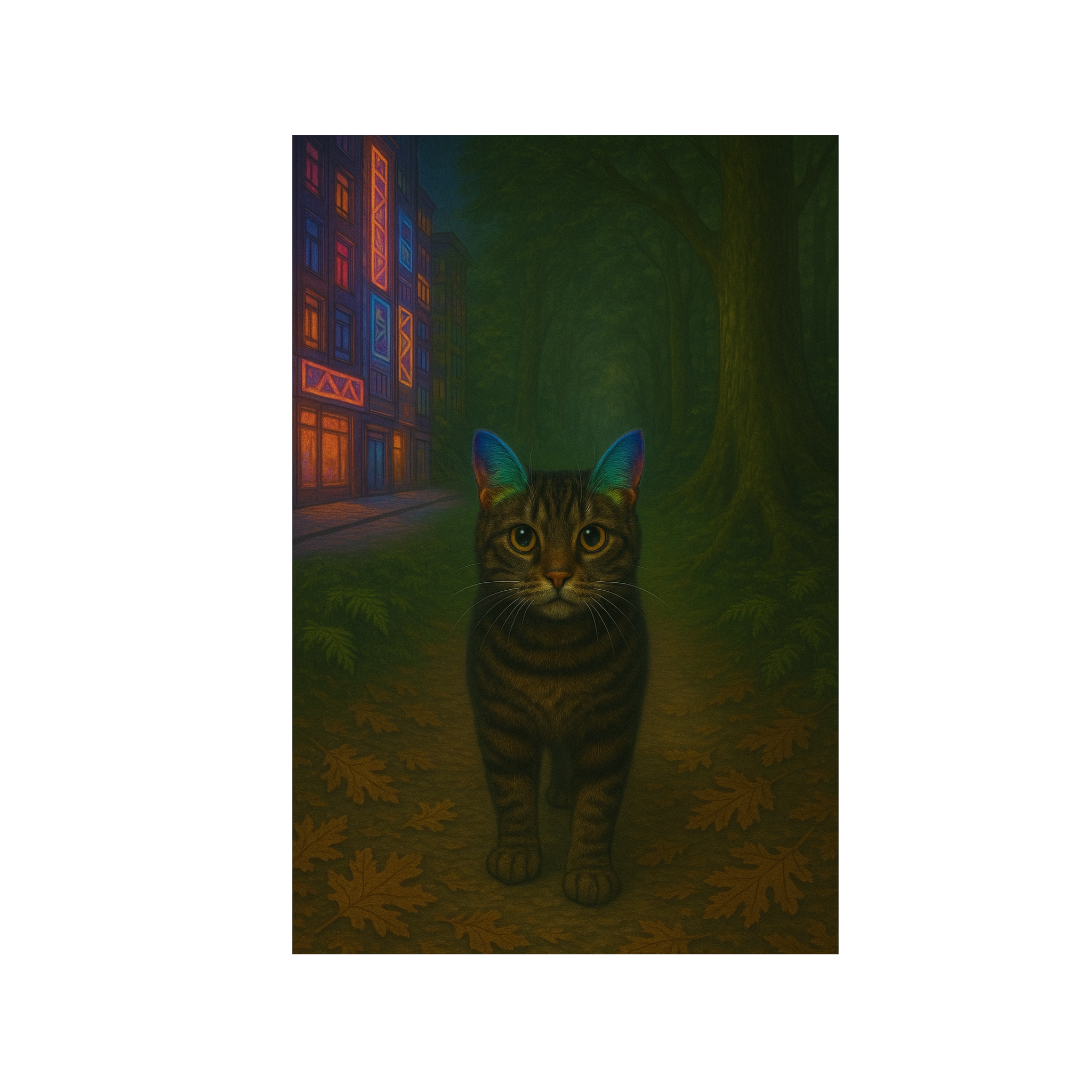 Vocals: Female soul voice — smoky, emotional, airy-powerful, Occasionally pitch-shifted to chipmunk-style for surreal sparkle, Ending: Final chorus fades into shimmering strings and echoing textures, Then: a mischievous, feline laugh — playful, magical, slightly mad, "Mrrrow–heheHE–mmmhihihi–nyaaah!" — like a jazz witchcat vanishing under a neon moon