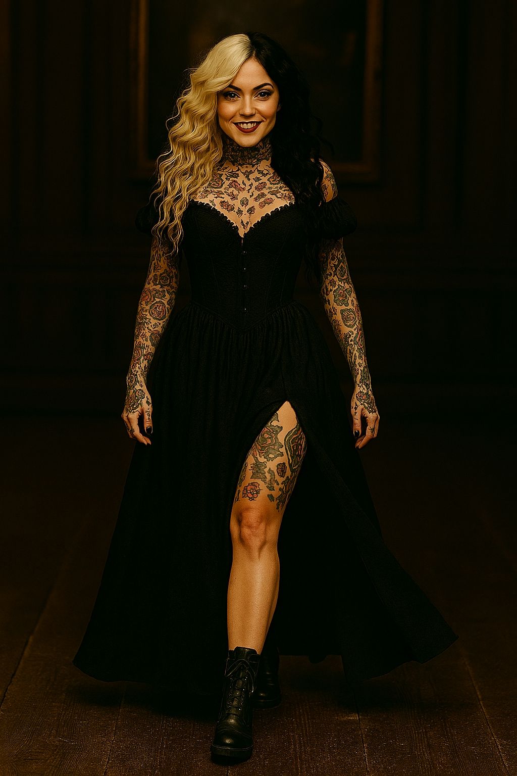 wild mix of extreme Doom-Metal + Breakcore + Elektronik + Oper + Orchester in recreational mid tempi and max 120Bpm; Textur: subsonisches 7‑string Bass, down‑tuned Riffs, blast/blastbeat + glitchy breakcore Perc; mehrstimmiger Opernchor, dramatische Streicher, analoge Drones; Field recordings: Schlamm, Schritte, Metallgong; Effekte: bitcrush, tape saturation, convolution Kathedral‑Reverb, aggressive Distortion; Arrangement: Intro Herz‑Pulse + Gong‑Decay → eruptiver Metal‑Break → elektronische Zerstückelung (polyrhythmik, Taktbrüche) → Chor‑Crescendo → kollabierender Gong‑Outro; Schlüsselwörter: Herz; Gong; Schlamm; Zeremonie; Licht vs Dunkelheit; Brutale Eleganz