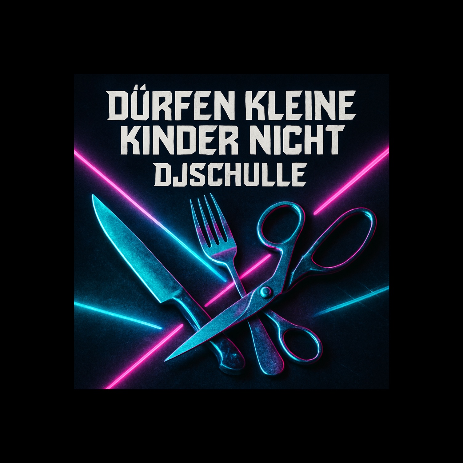 A hard-hitting 1990s German techno rave banger with distorted stuttered vocals, glitchy chopped phrases, pounding 4-on-the-floor kick drums, trancey acid synths, and rave sirens, Spoken German vocals with childlike rhymes, twisted into darkly playful rave chants, Use stutter effects on "Messer–Messer–Messer", "Gabel–Gabel", and pitch-drop "Liiicht", with a drop after each phrase, Add filtered build-ups and vocal chops like: "Dürfen kleine–kleine–kleine Kinder nicht!", with bass-heavy drops, Aggressive and nostalgic NDW-style techno