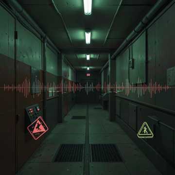 Slow-burn dark industrial hip-hop around 90 BPM, Sparse, tense intro with distant room tones and subtle high-frequency ringing, gradually layered with distorted low-end pulses and irregular, almost arrhythmic percussion that snaps into a heavy breakbeat, Glitch artifacts, reversed textures, and abrupt dropouts mimic sensory misfires and prediction errors, Verses stay minimal and claustrophobic, choruses expand into a dense wall of noise and bass pressure, Vocals shift from controlled, observational delivery to strained, urgent projection, sitting raw and forward in the mix to feel invasive and unavoidable, ‑uplifting, ‑clean pop, ‑acoustic warmth, ‑bright major key, ‑playful tone, ‑comedic delivery, ‑lofi chill beats, ‑soft ambient pads, ‑hopeful resolution