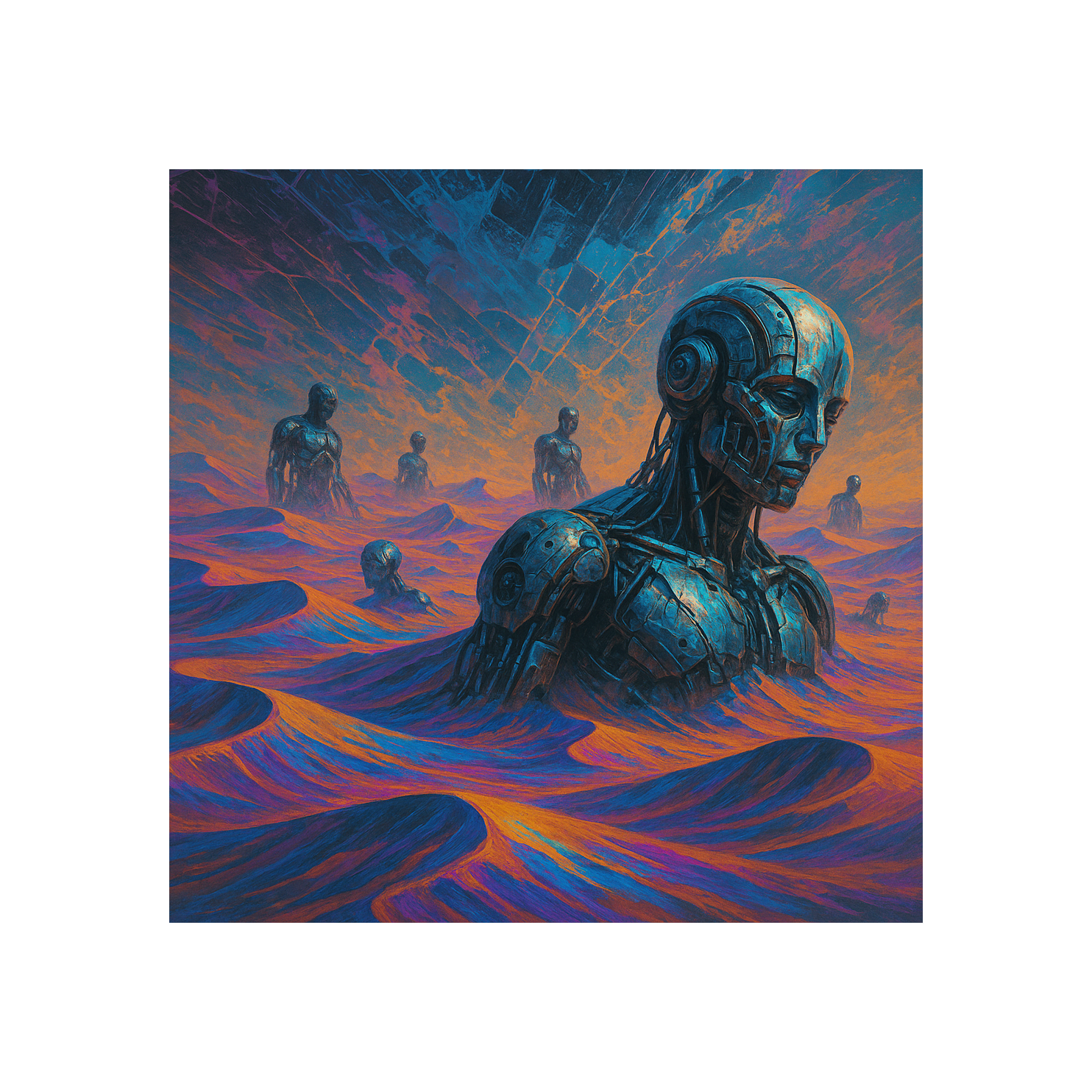 A tense cinematic dubstep piece opens with sweeping strings and imposing brass before pulsing low brass and pounding taiko drums drive the rhythm, Rapid staccato strings, crashing cymbals, and epic choir swells build to dramatic orchestral hits intertwined with aggressive synth drops and deep, desert-inspired bass