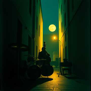 Pulsating soft jazz composition, 115 BPM, Soft rolling bass and drums anchor the track, joined by warm, expressive piano chords, Trumpet weaves intricate melodies, expanding for the guitar and piano solos and lively call-and-response interplay, Acoustic classical guitar comps add rhythmic texture, building dynamic depth between sections, electro, melodic