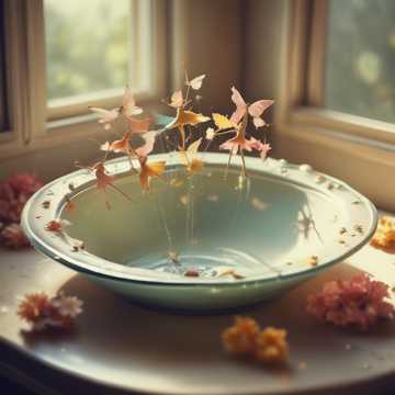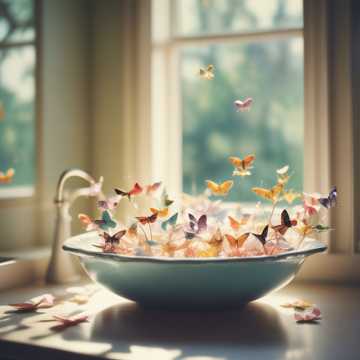 Whimsical and cheerful fairy instrumental, Imagine butterflies and tiny fairies fluttering joyfully around a woman washing dishes in the sunlight, Light, sparkling sounds — glockenspiel, celesta, harp, piccolo, soft strings, and gentle woodwinds, Magical and airy atmosphere, full of twinkling tones and fluttering melodies, No vocals, just instrumental, Style: fantasy, light classical, playful, heartwarming, cinematic, Mood: pure, bright, charming, like a fairy morning song