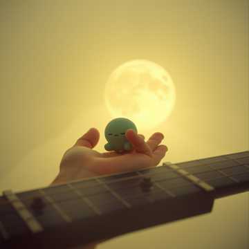 Gentle lullaby over soft fingerpicked acoustic guitar and subtle warm pads; female vocals close to the mic, almost spoken, Melody rocks in a narrow range, very simple and repetitive, A tiny glockenspiel doubles key phrases in the chorus, then drops back to leave space for hushed humming at the end