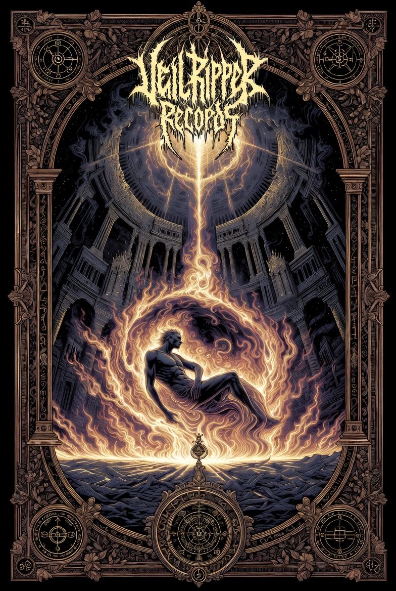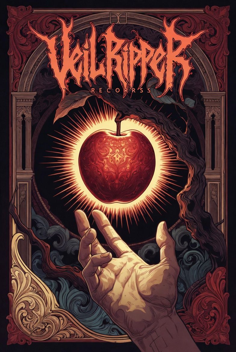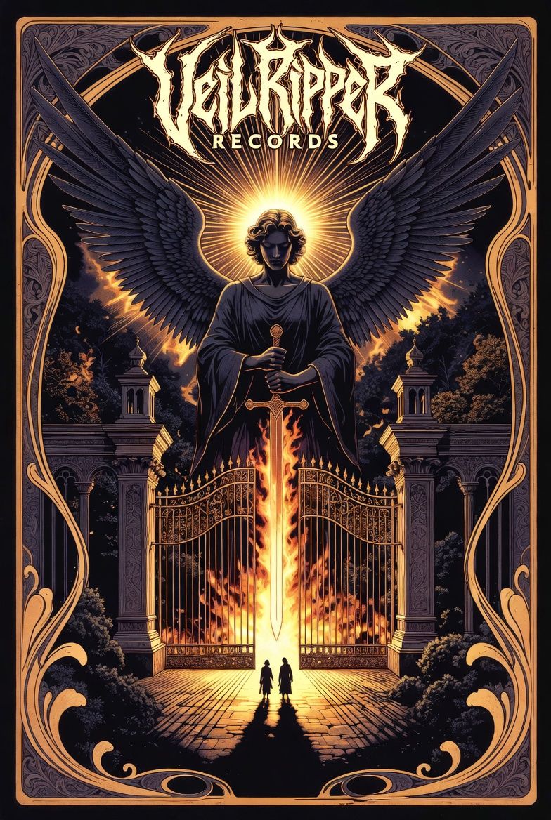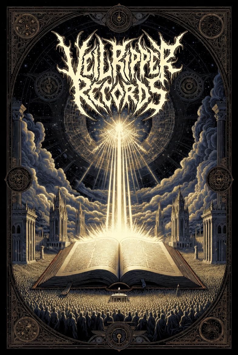 Atmospheric theological deathcore metal inspired by Whitechapel – The Valley / Kin, Slow, crushing groove (≈85 BPM, drop G/F tuning), dark minor key, Massive low-tuned guitars with heavy palm-muted chugs, rumbling bass, spacious drums with deep toms and restrained double kick, Intro begins with spoken sermon narration over eerie drones, distant choir pads and cinematic ambience, Verses remain slow and oppressive with dissonant melodic fragments and cavernous growls, Pre-chorus builds tension with rising guitar leads and swelling atmosphere, Chorus explodes into huge emotional melodic deathcore, wide chords, haunting lead guitar and layered screams, Solos are mournful and expressive, echo-laden, Bridge collapses into a ritualistic breakdown, minimal guitars, whispered layers and crushing drop riff, Final invocation returns to spoken voice over fading ambience, Mood: cosmic judgment, theological gravity, apocalyptic melancholy