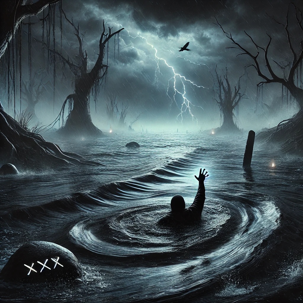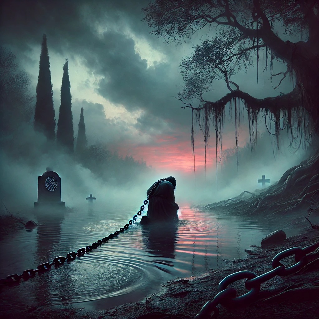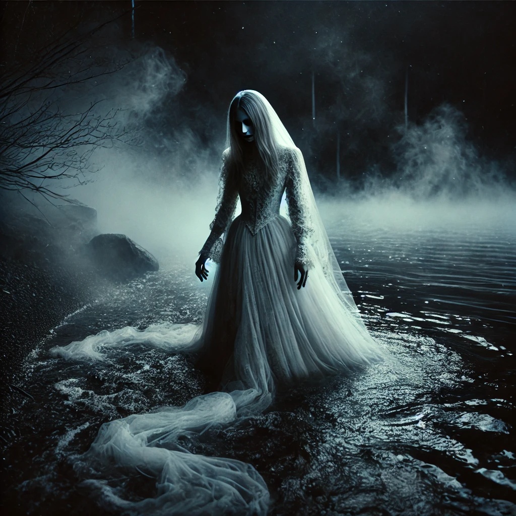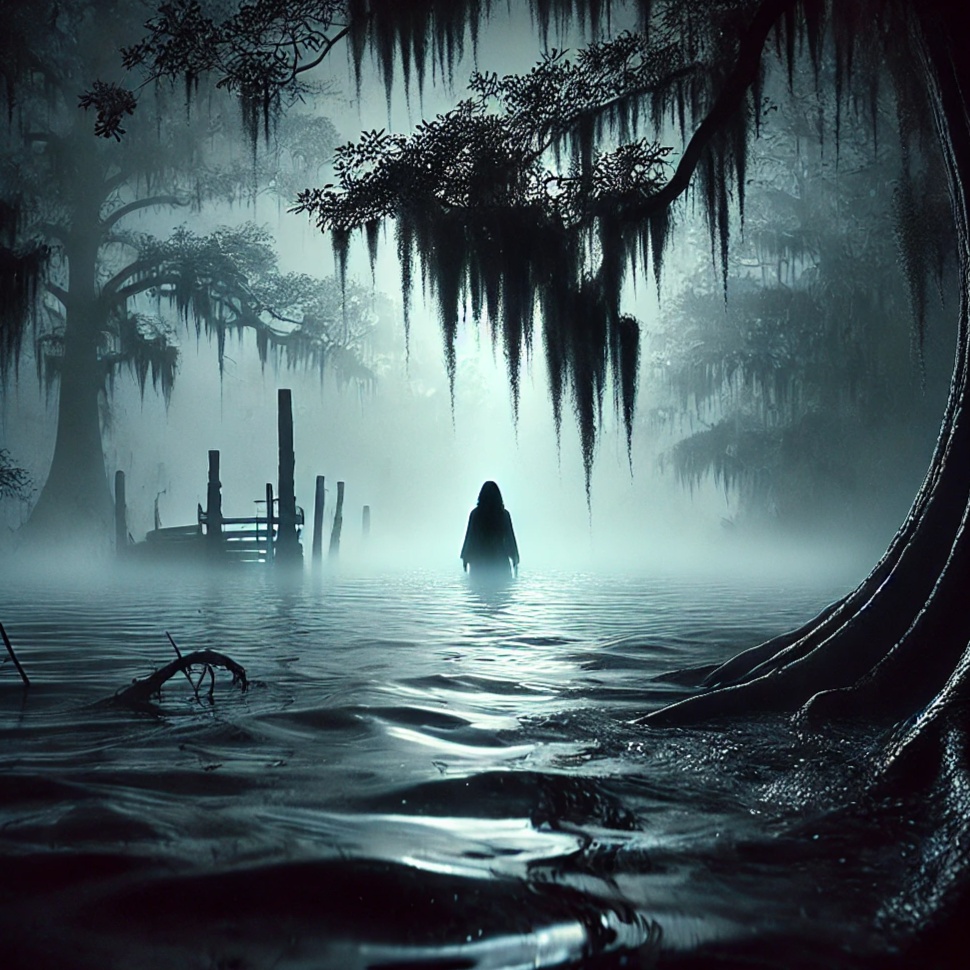 Swampy blues slide guitar, deep war drums, eerie throat singing, Ethereal female vocals, Cinematic and haunting—Southern Gothic meets Norse myth, A ghostly bride calls from the river’s, slow fade-out