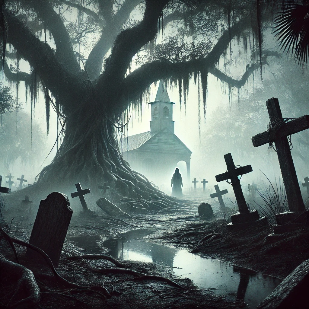ethereal female vocals, Dark Southern Gothic meets Norse battle chants, Cinematic, ghostly atmosphere with mythic tension