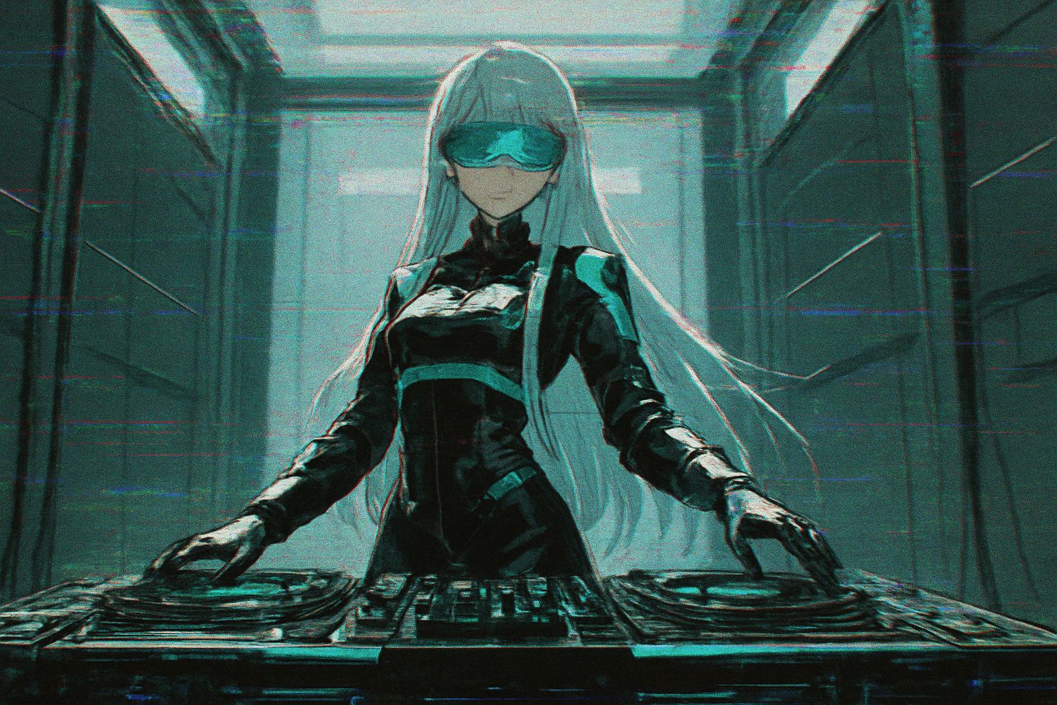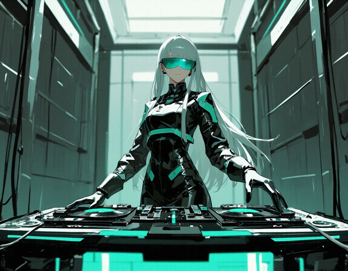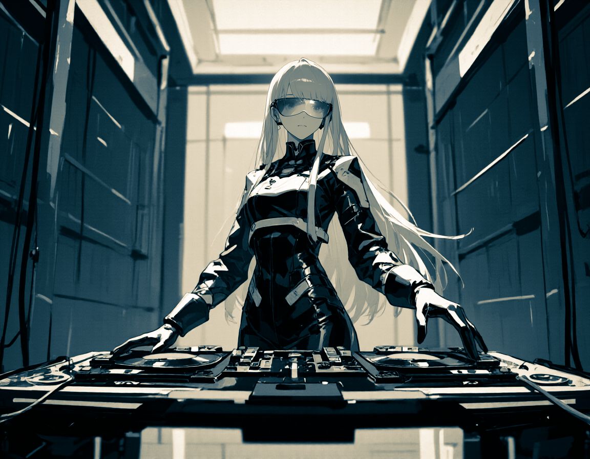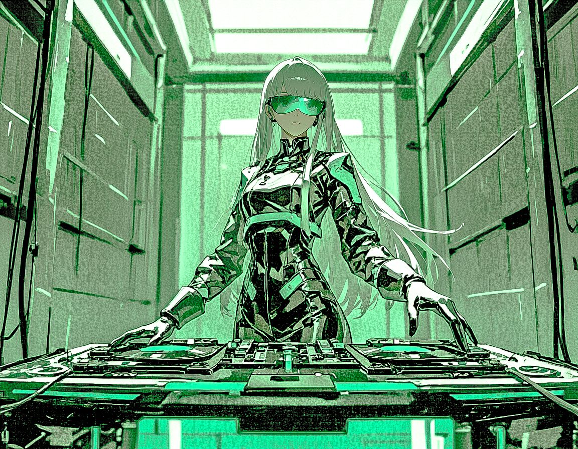 over a brutal bass-driven drop, Futuristic, restrained, and atmospheric