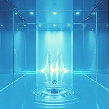 short dripping or liquid sounds, appearing in the gaps and pauses, not constant and not dominant, Water sounds are clearly audible when they appear, then quickly disappear, Extremely cold, mechanical, minimal atmosphere, Futuristic and restrained