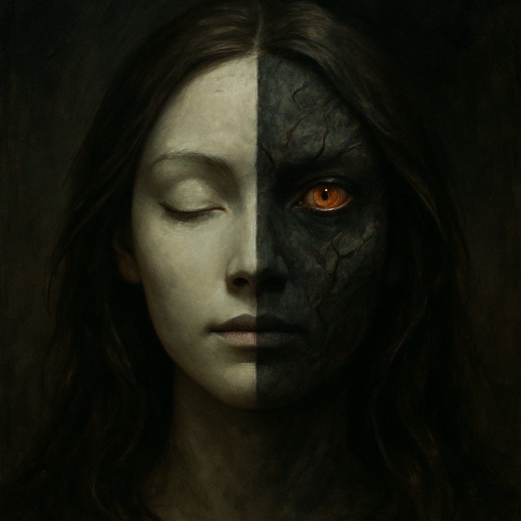 A dark, emotionally charged rock song with clean singing and intense dynamics, Starts with a melancholic verse, builds into a powerful chorus, and ends with a massive metal breakdown featuring harsh vocals and heavy guitars, No electronic filters or synths – just real instruments: distorted guitars, bass, drums, and raw vocals
