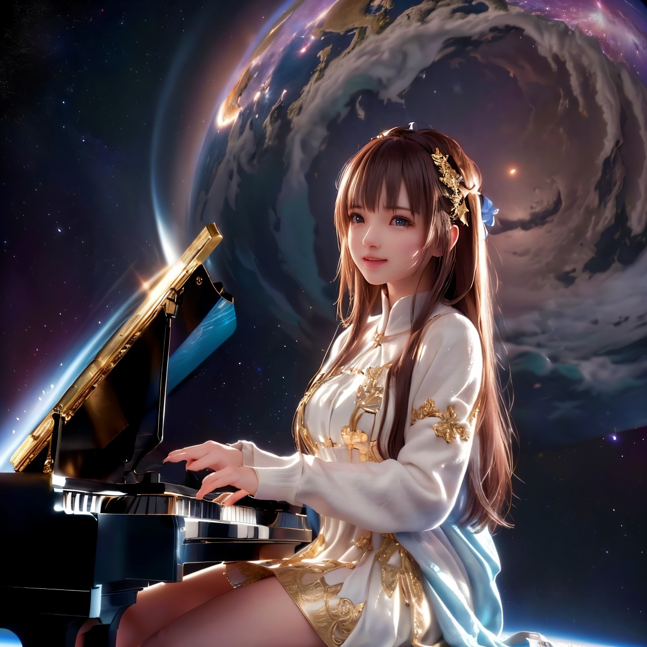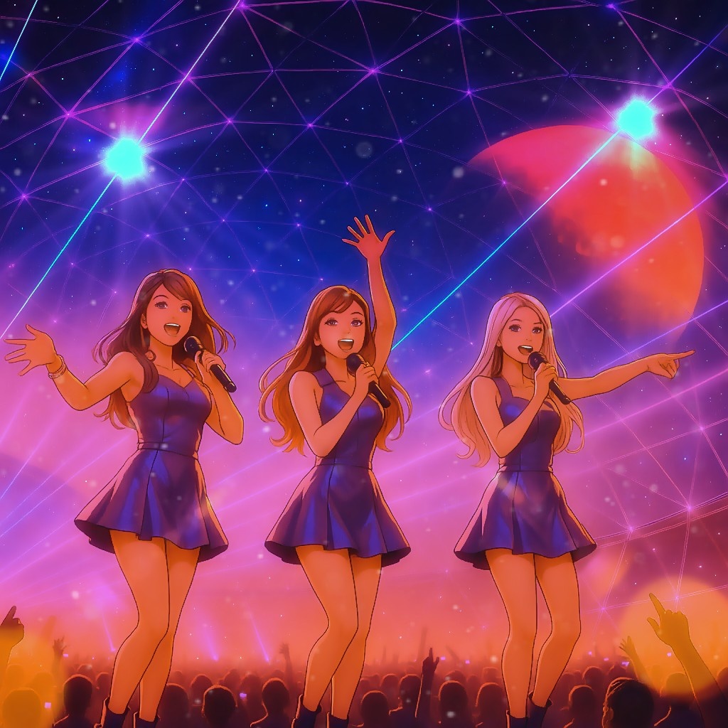 A high-energy Eurodance, EDM remix of the classic Japanese song, Live concert without audience and crowd noise, Performed with traditional Japanese instruments like taiko drums and shamisen, but with a futuristic and space-themed twist, Female vocals in Japanese, strong and clear, fast-paced and rhythmic, Wide stereo field, Concert hall ambiance, Spacious midrange, Clean mix, Balanced compression, Mastered at -16 LUFS, Max peak level =-3db, Rich stereo reverb, Clear highs, Deep controlled bass, Polished final mix, Floating melody, Oscillating stereo field, Panning movement, Swirling ambient layers, Expansive reverb, Dreamy and sacred, Binaural-style mix, stereo drift, 145 BPM, ‑Clipping, ‑Distortion, ‑Vocal enhancement, ‑Vocal distortion, ‑harsh treble, ‑over compression