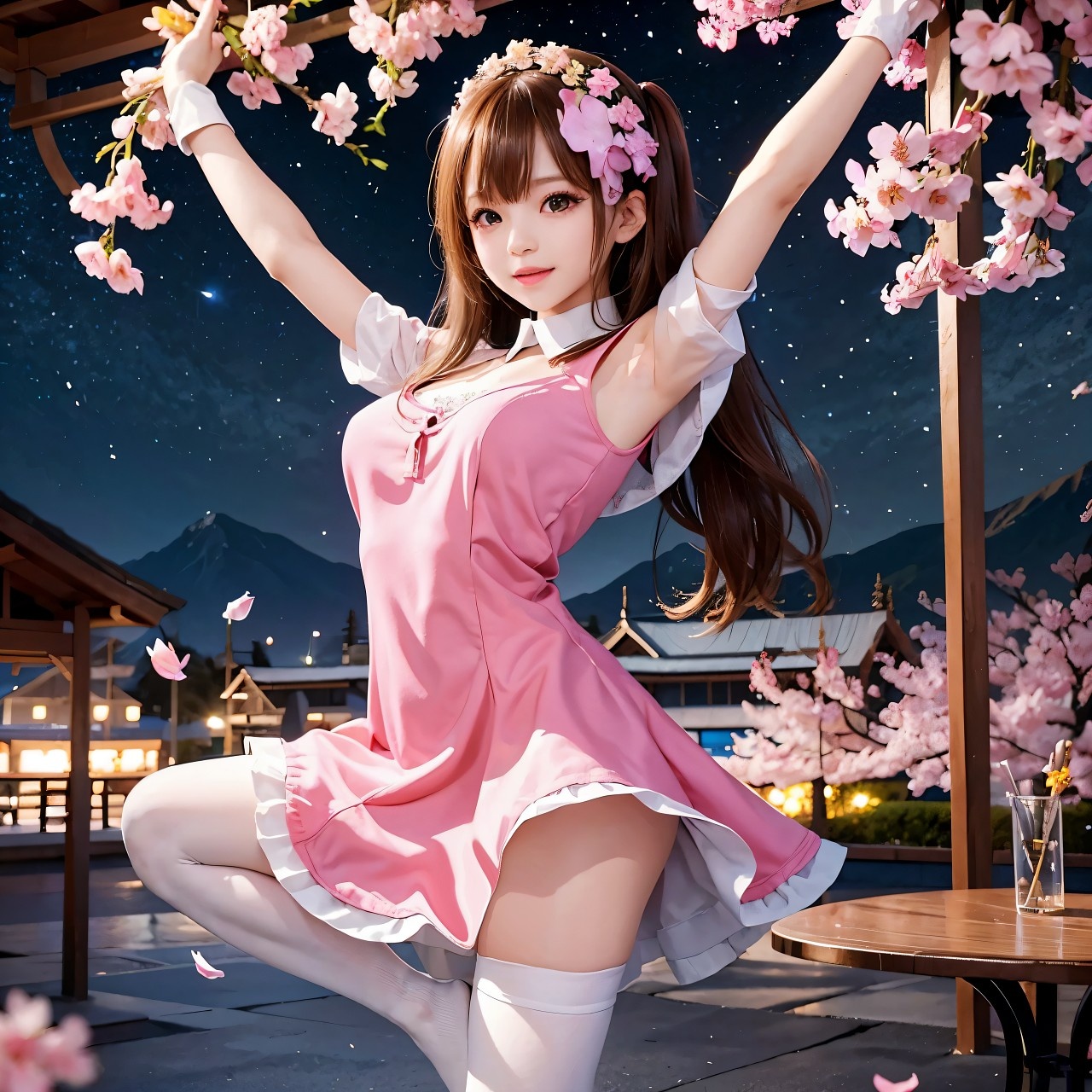 Nightcore, Cute Edm, J-pop fusion, Super saw, Female vocals, Hi-pitched, Energetic, Falsetto and playful tone, Wide stereo field, Concert hall ambiance, Spacious midrange, Clean mix, Balanced compression, Mastered at -16 LUFS, Rich stereo reverb, Clear highs, Deep controlled bass, Polished final mix, Floating melody, Oscillating stereo field, Panning movement, Swirling ambient layers, Expansive reverb, Dreamy and sacred, Binaural-style mix, stereo drift, Drop section with super saw and sidechained bass, EDM drop with high energy impact