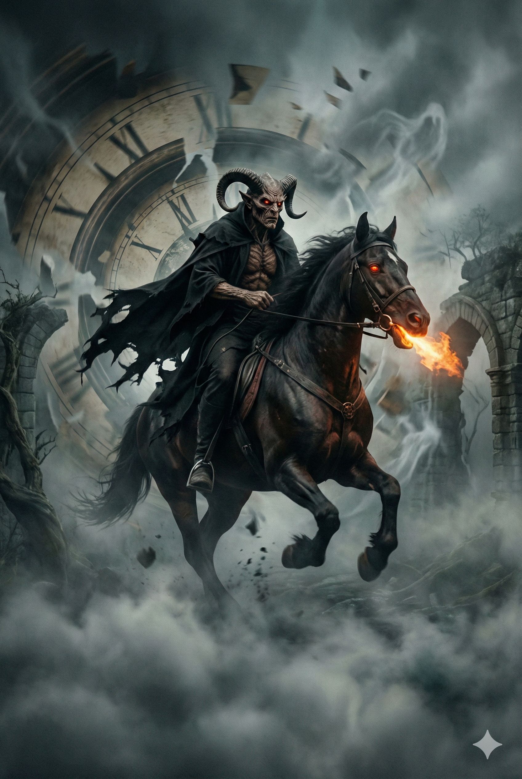 [Style: Dark Heavy Metal, galloping bassline, fast staccato riff, gritty baritone vocals, melodic twin guitars, no high screams, powerful chest voice]