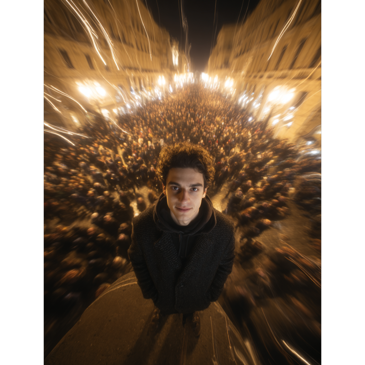 Italian Pop Ballad / Reggaeton Fusion in C Major at 100 BPM, Vocals: Male with an exceptionally wide and agile range (intimate, passionate, celebratory), showcasing fluid transitions from a warm baritone to a powerful high tenor belt and a pure, devotional falsetto, Instrumental: A hybrid of a bright, clean synth-pluck riff, a hard-hitting Dembow beat, a deep 808 sub-bass, and wide, cinematic synth pads with heavy stereo panning for an immersive, surround sound experience, Melody: A highly dynamic vocal melody that is tender and narrative in the ballad-like verses, exploding into a soaring, powerful, and anthemic hook in the Reggaeton chorus, The track is anchored by a bright, cyclical, and catchy synth riff, Harmony: Built on a classic and cheerful I-V-vi-IV (C-G-Am-F) progression, The harmony is minimal and atmospheric in the verses, then swells into a lush, massive soundscape in the chorus to create a dramatic, euphoric, and deeply romantic emotional release