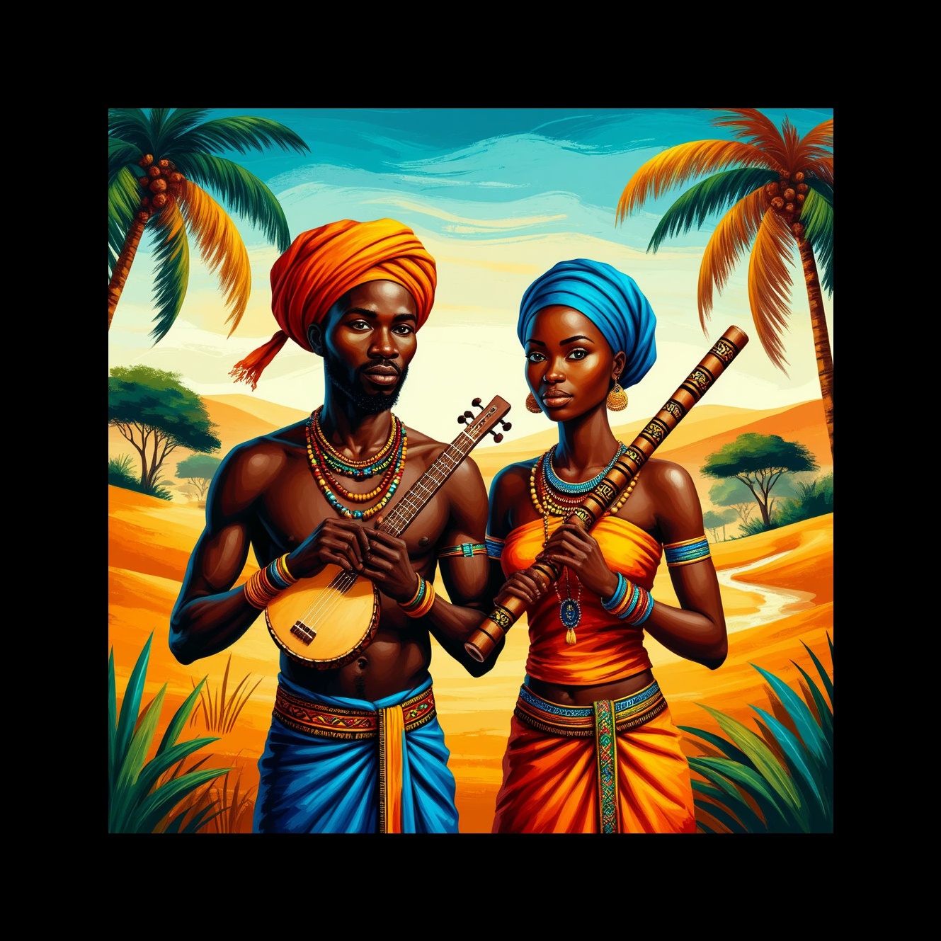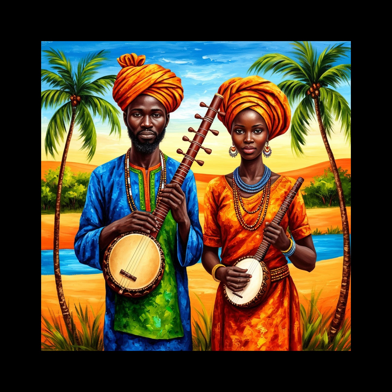 A male voice, rich with the cadence of ethnic Wolof traditions from West Africa, resounds against the backdrop of traditional instruments such as the halam, kora, or balafon, The voice, deeply African in tone, weaves through the vibrant melodies, embodying the soulful essence of Wolof folk music, Each note and word carries the heritage and spirit of the Wolof people, telling stories passed down through generations, in a harmonious blend of culture and tradition, Reverb