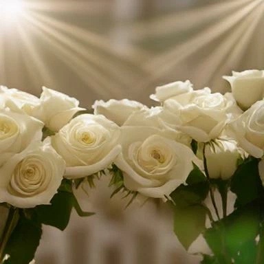 meditative sound, relaxing, chill-out, Un bouquet de roses blanches, Des rayons de soleil, Dynamique, Un super chef-d'œuvre, Gros plan