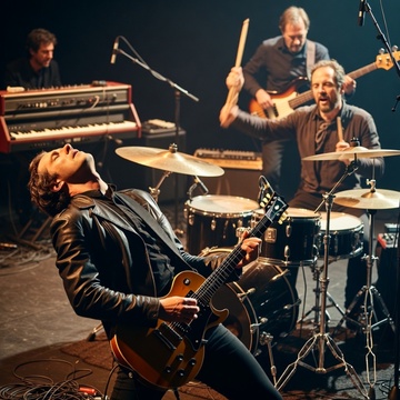 rock, Brisk jazz-rock groove with tight live drums, walking bass locking to a crunchy rhythm guitar riff, Horn stabs trade with a bright Rhodes piano; chorus lifts with stacked male/female vocals and unison guitar-sax line doubling the hook, Short, tasty guitar solo in the bridge, everything mixed forward and dry for that club-stage energy, jazz