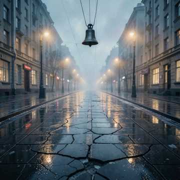 Atmospheric Russian Rock, Dreamy Post-Punk, Viktor Tsoi vocal style, Piano intro, Deep male baritone, 1980s Soviet New Wave, String orchestra, Cinematic orchestral arrangement, Ethereal synth pads, Yuri Kasparyan melodic guitar, Reverb, Minor key, Melancholic, Epic, Urban solitude, Orchestral swell