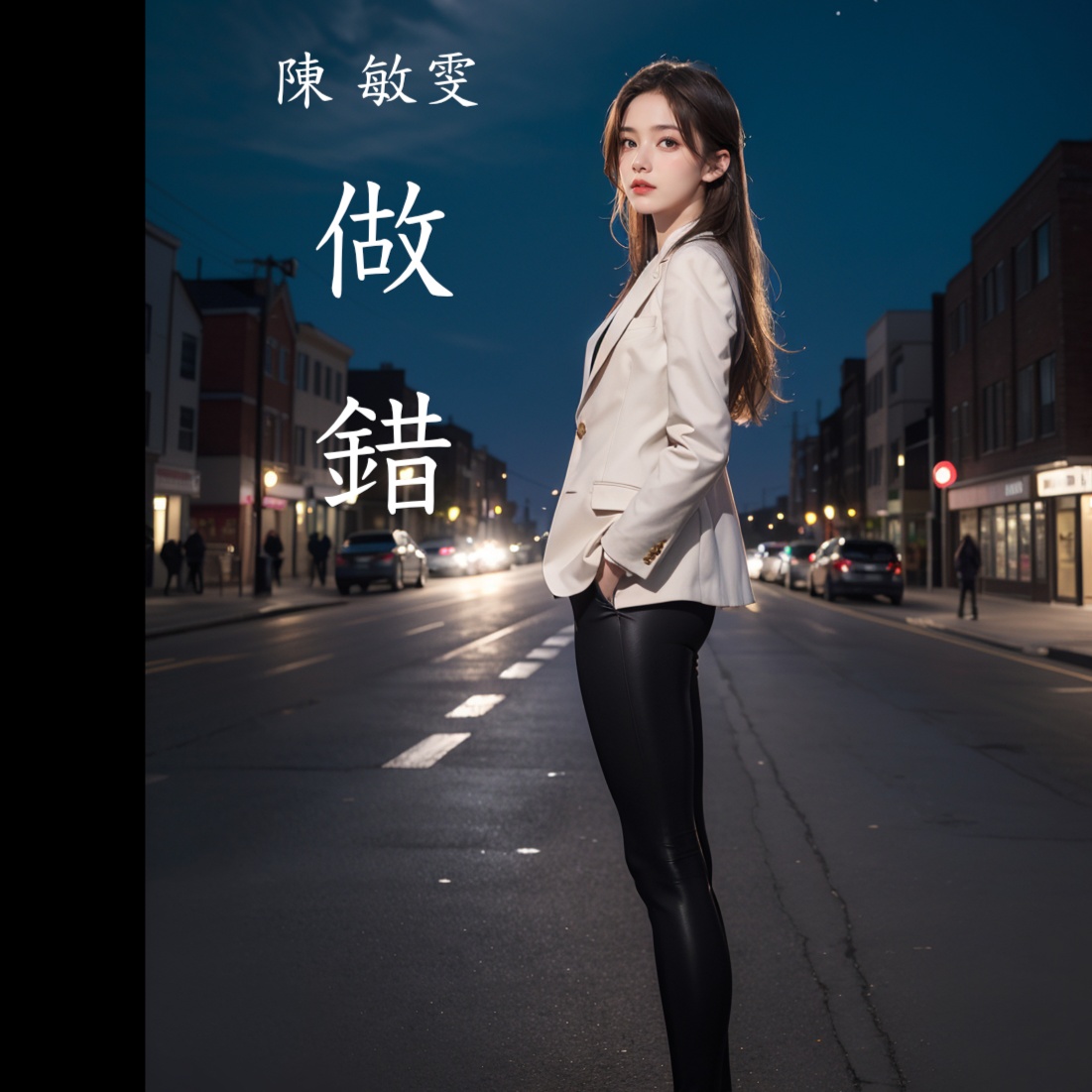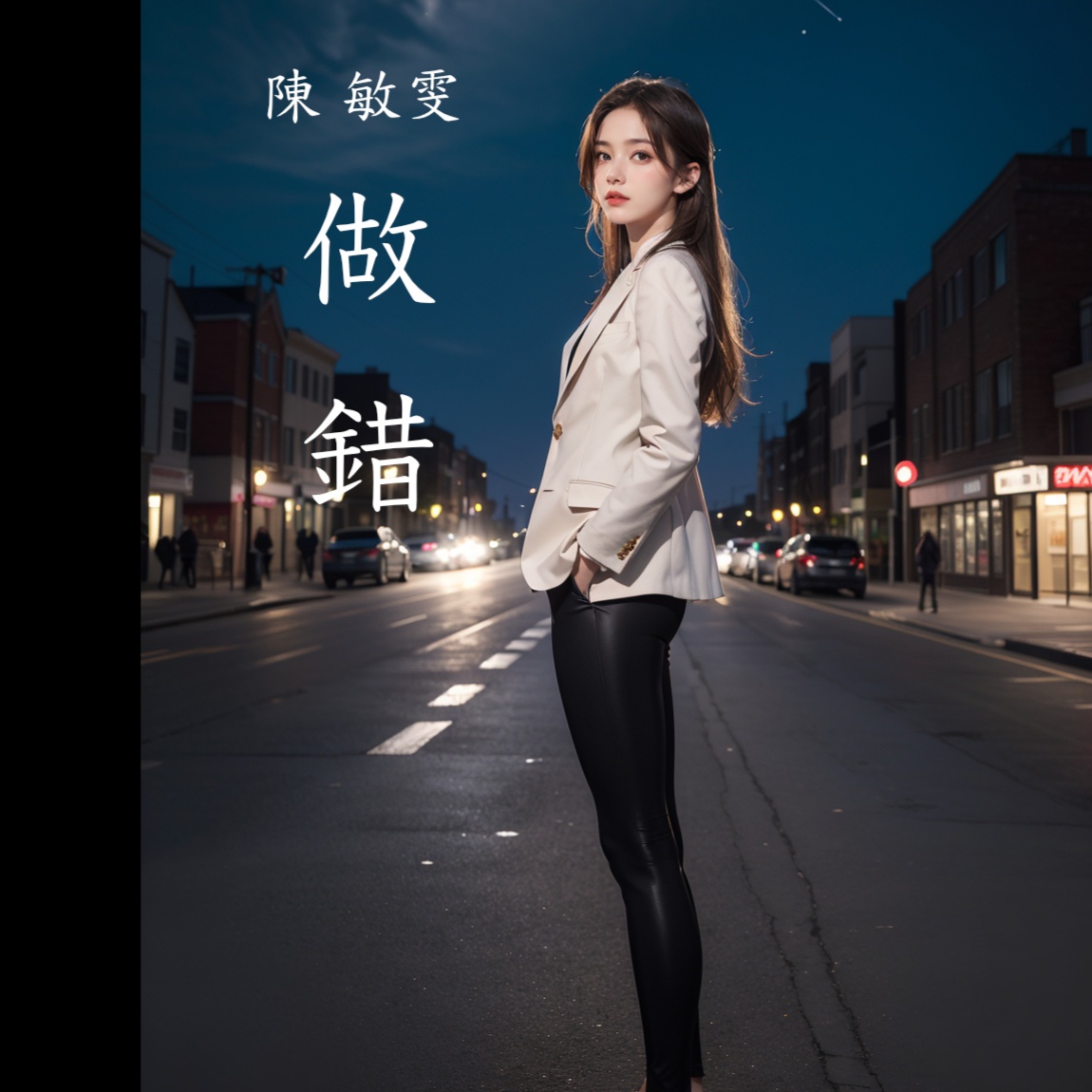 A melancholic yet dreamy Cantonese female vocal ballad in the style of modern City Pop, blending 80s-inspired synths, jazzy electric piano, soft funk basslines, and smooth electronic drums, Emotive and atmospheric, with a reflective tone, The music should support an introspective, bittersweet theme of lost love and self-doubt, with clear space for expressive vocal phrasing