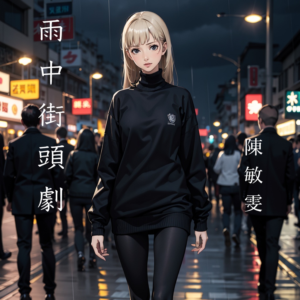 Cantonese female vocal, Romantic and emotional City Pop with light Funk influences, Warm electric piano, groovy bassline, soft funk guitar, retro synth pads, and 80s-style electronic drums, Include gentle ambient rain sounds in the background to create a cinematic rainy night atmosphere, Mid-tempo rhythm, with a slightly melancholic but hopeful tone, Verses should feel introspective and bittersweet, while choruses bring emotional lift and warmth, Add a smooth instrumental bridge or key change before the final chorus to enhance the “happy ending” feel, Overall, the sound should feel nostalgic, soft, and dreamy — like a love story unfolding on a rainy city street at night