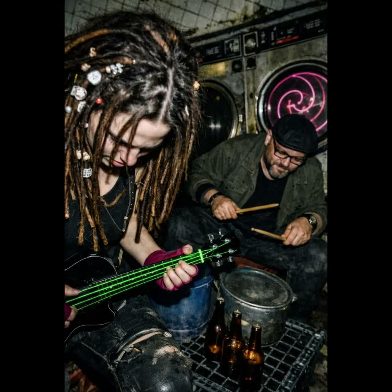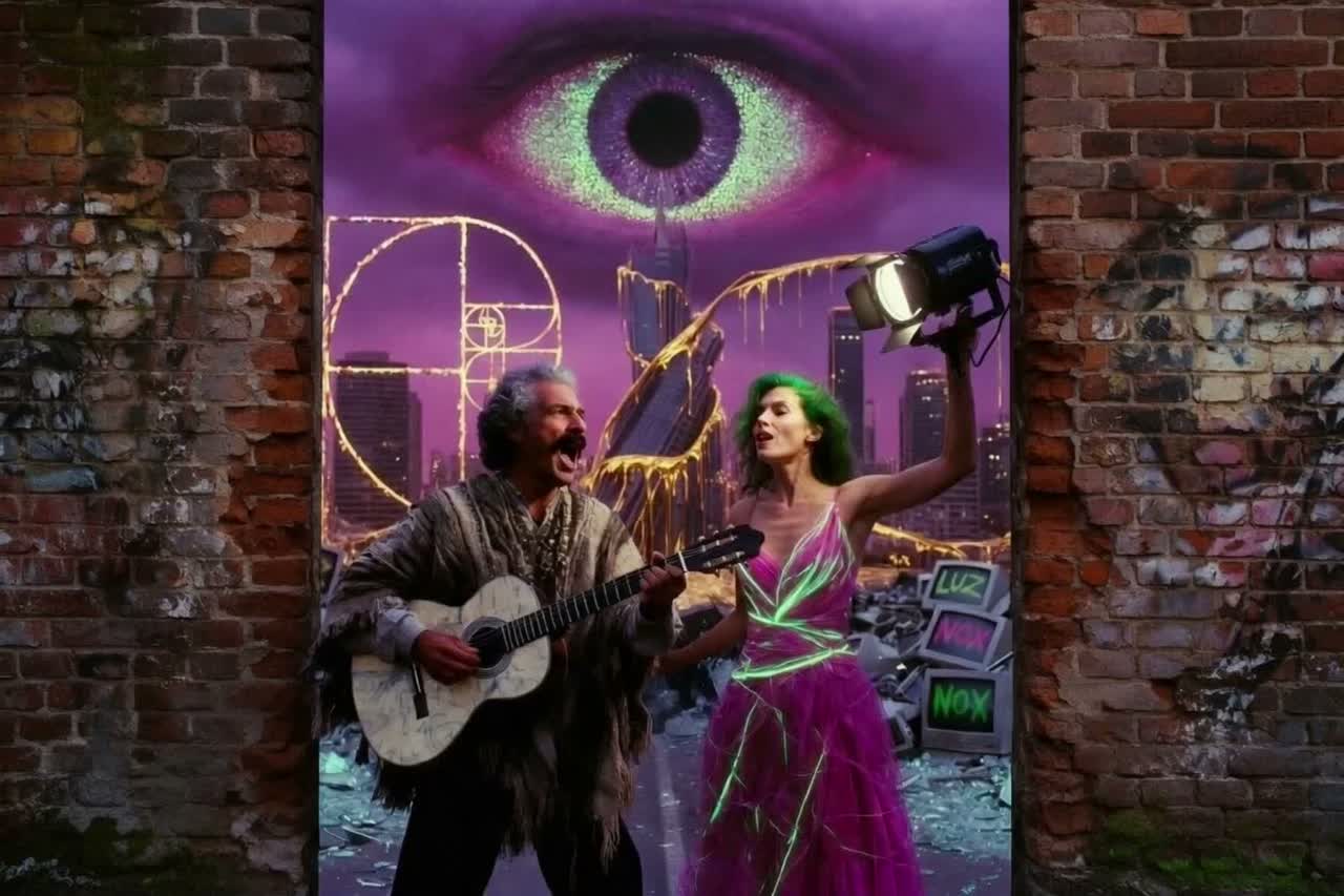 Apocalyptic Glitch-Candombe, Industrial Stoner Funk, 115 BPM, Heavy distorted Slap Bass (Buldron), Primal Shekere rhythms, Gritty Murga-Metal guitars, Male: Cynical raspy Rioplatense swagger, Female: Soaring Afro-Uruguayan Soul, Ethereal Elvish yodels, 33Hz Sub-bass, white noise glitches, epic cinematic chaos