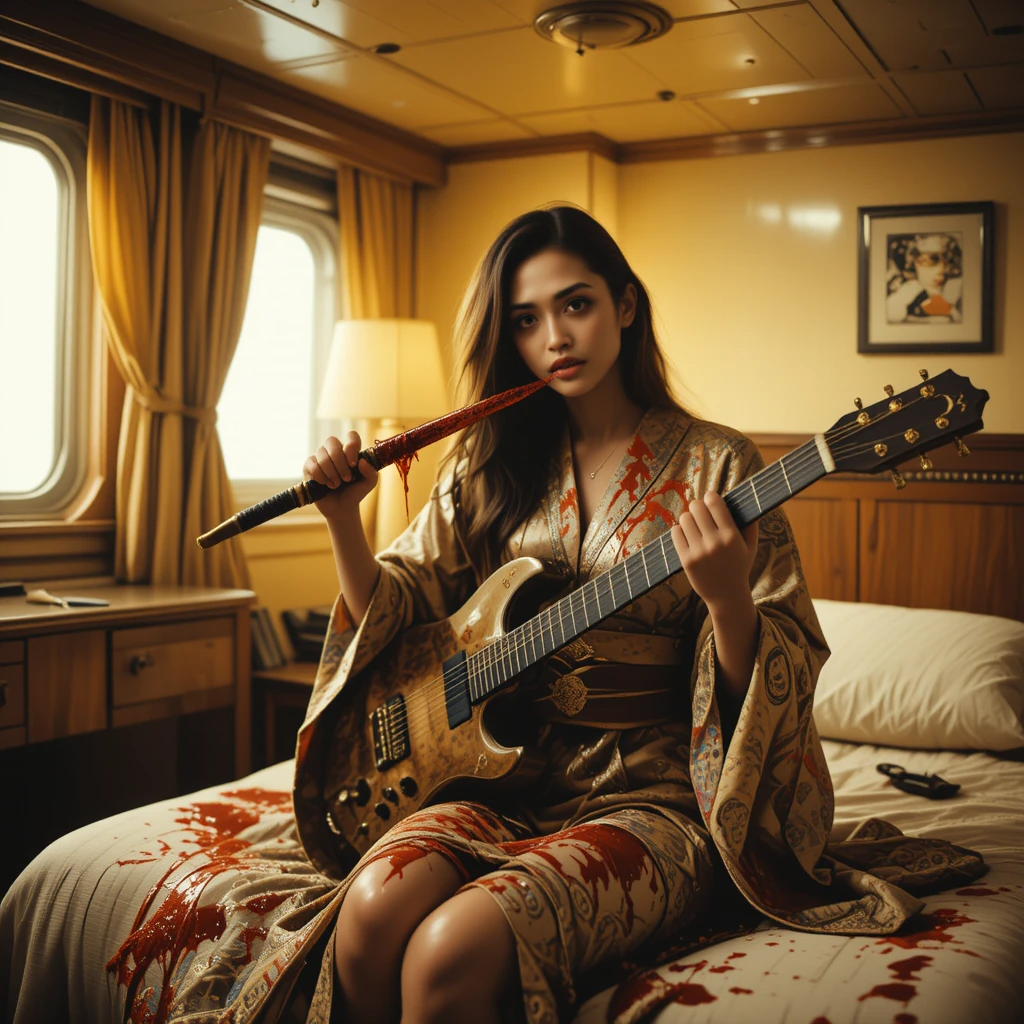 industrial metal fused with groove and fantasy inspired aesthetics, mezzo female vocal, gritty snarling growl vocals, vocals are half spoken-half screamed-with distortion effects, electric guitar, electric melody guitar, electric bass guitar, acoustic drum, electric drum, drum machine, synthesizer, indonesian language
