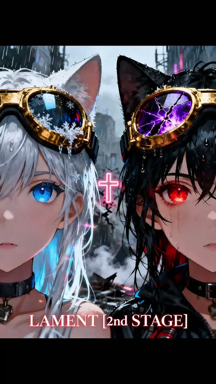A powerful young girl and adult girl duet vocals, emotional, futuristic girls melodic core punk rock track influenced by anime and New Wave by Visual-Kei and orchestra strings, Features shimmering synthesizers, melodic distorted guitar riffs down picking with bridge mute, Grainy bass guitar melody line and slide movement, The drum sounds are dry and clear, with many strokes and precise rhythms