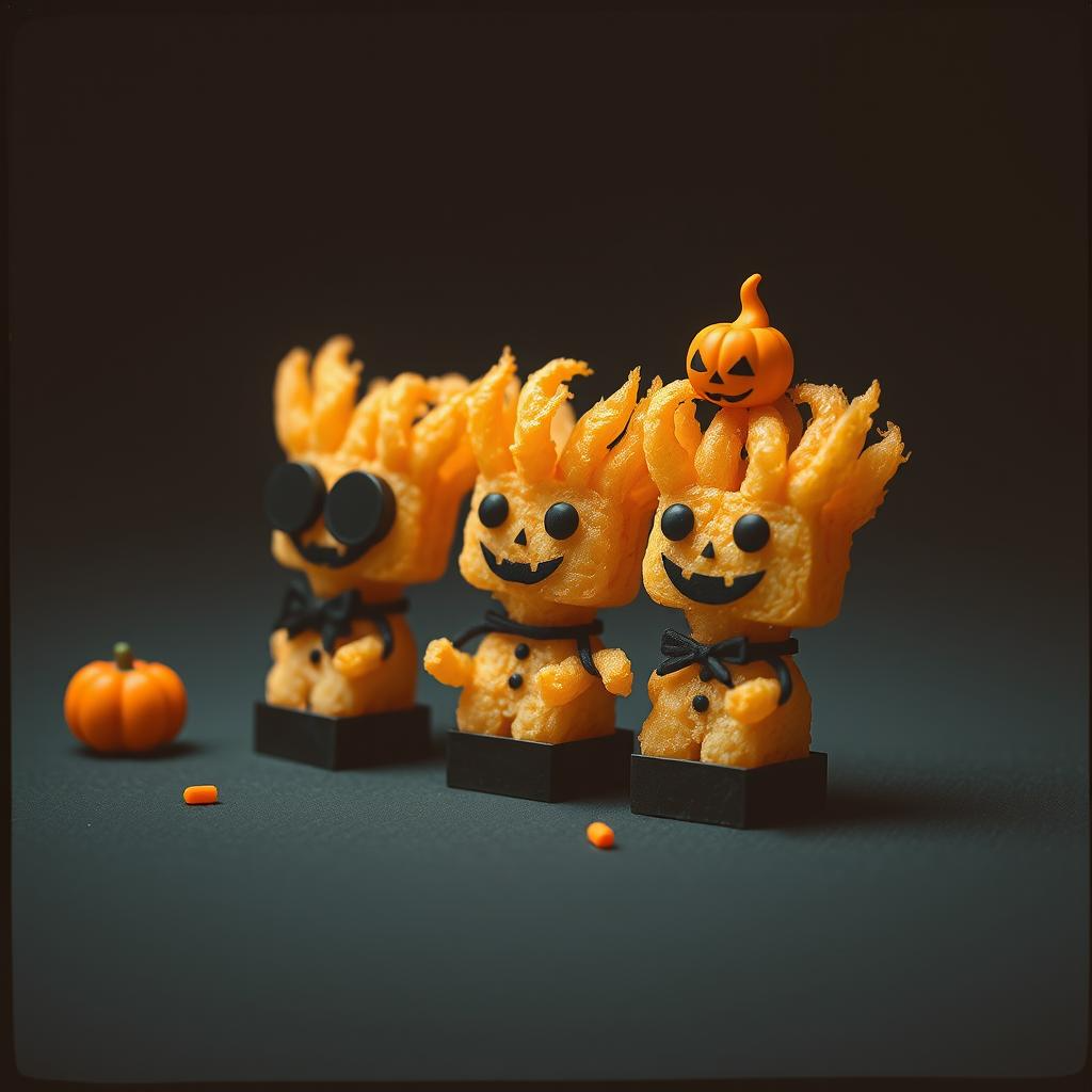 halloween, orchestral with playful undertones, ensemble vocals with dramatic flair, theatrical, eerie, distinct