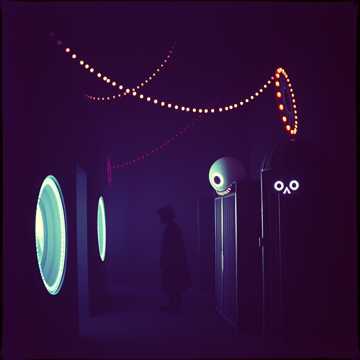 atmospheric, haunting, theme, halloween, otherworldly soundscape; vocals transition from monotone to theatrically sinister as the song progresses, electronic textures; layered analog synths and minimal percussion create an eerie