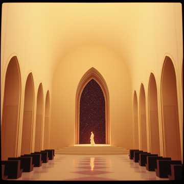 Ritual Aelorian sung in the Vocaris Aethernic Hymnal style, a fusion of Egyptian, Gregorian, and Hindu voices with an ancestral tonality, A single voice begins the chant, but shifts persona like a traveling spirit, alternating between deep bass and luminous high notes with harmonic singing technique, The melody opens with broad vocal layers, reminiscent of ritual choirs from forgotten temples, Backing vocals follow the Aelorian pattern, with resonances of stone chambers and ancient ritual vibrations, The sitar creates delicate sonic webs between the voices, Epic timpani mark the pulse of the rite, but the production is minimal, based on natural echo, creating a sense of sacred emptiness, The mood is one of luminous hope, spiritual ecstasy, and deep reverberation, as if an ancestral choir echoed through a sleeping planet