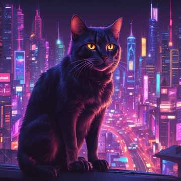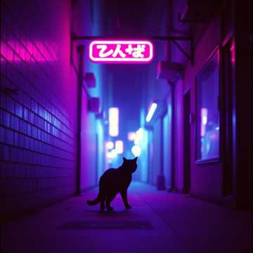 synthwave, japanese, dark cyber, cyberpunk, dark cyberpunk, Cat, meowmusic, cat meow