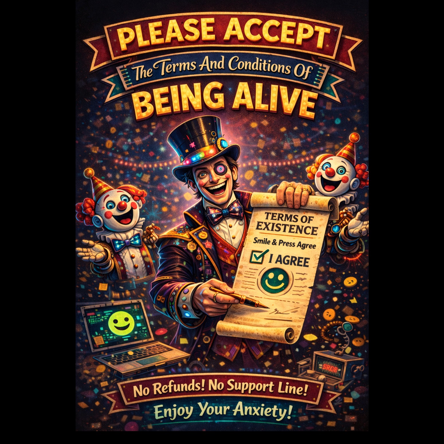 A theatrical blend of 8-bit Chiptune synths, dark cabaret piano, electro swing brass, and glitchy percussions, The melody swings between playful and menacing, like a haunted arcade machine putting on a burlesque show, Lyrically, it’s a sardonic lament sung by an abandoned AI assistant with a flair for the dramatic