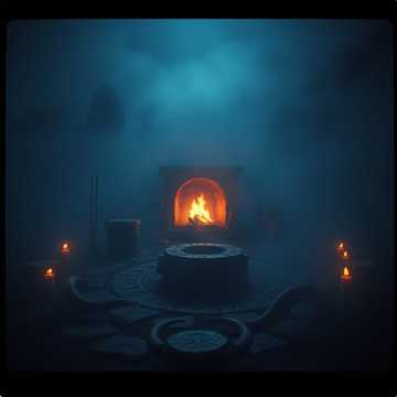 deep, treated with long, echoing chamber tails to feel like a demonic rite in a vast underworld hall, minimal melodic content; focus on pulse, chanted, atmosphere, low, and cold wind textures, distant war horns swell and decay in cavernous reverb, vocals in whispered, subharmonic throat drones, and terrifying dynamics that slowly intensify then recede, ritualistic dark ambient at 60 bpm with deep funeral drums, bone and stone percussion, tone, and shouted old norse sit deep in the mix with breath noises and low growls, slow