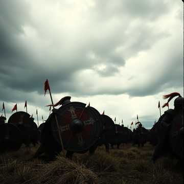 and voices pushing a relentless phalanx march, deep, punctuated by bronze shield clashes as primary high-frequency accent, keep the texture raw, clean, raw, feet, harsh, and close, with no melody instruments—only drums, dry, men’s war chant over huge frame drums and group stomps at 90 bpm, layer brutal unison shouts with antiphonal responses