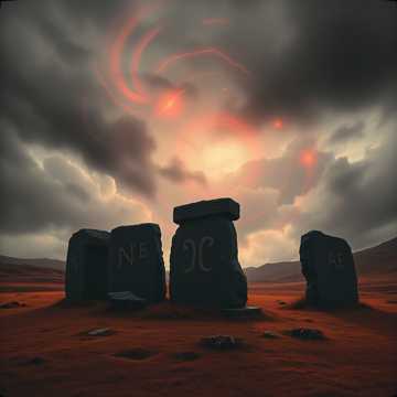deep, slow male chanting in middle egyptian phonetic style, low brass, ney and duduk flutes, 64 bpm, eerie desert ambience, deep ritual drums, demonic whispers, sistrum rattles, orchestral, dark cinematic orchestral, slow, low, heavy percussion