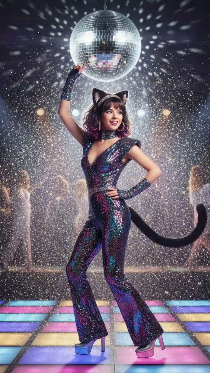 The track launches with four-on-the-floor drums, syncopated hi-hats, and a pulsing bassline, Chic rhythm guitars weave with punchy brass stabs, while lush string pads fill the chorus, Percussive breakdowns with cowbell drive the groove, building momentum before each hook
