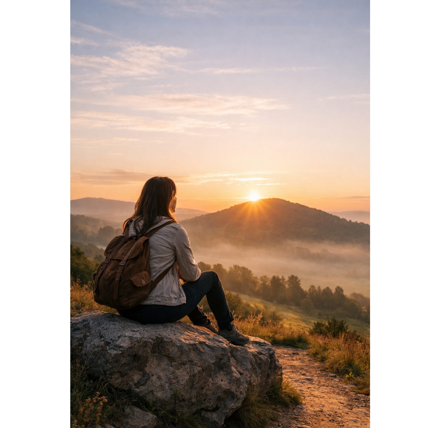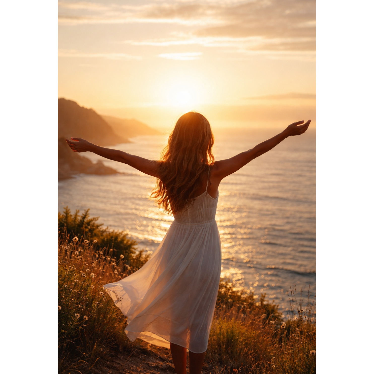 Acoustic / Indie Pop apaisant et introspectif — Tempo lent à modéré (~64–72 BPM), piano doux en accords ouverts avec beaucoup d’espace, guitare acoustique légère en arpèges fluides, textures de pads atmosphériques très subtils pour créer une sensation d’air et d’horizon, basse ronde et feutrée soutenant délicatement l’émotion, percussions minimalistes et organiques (kick profond et discret, snaps légers ou brushed drums), Progression douce avec une montée légère au refrain grâce à des harmonies vocales aérées mais naturelles, Voix féminine chaleureuse, intime et sincère, légèrement fragile dans les couplets puis plus lumineuse dans le refrain, respirations audibles pour renforcer la proximité, Ambiance : lever de soleil, route sableuse, vent léger, sensation de liberté et de renaissance intérieure
