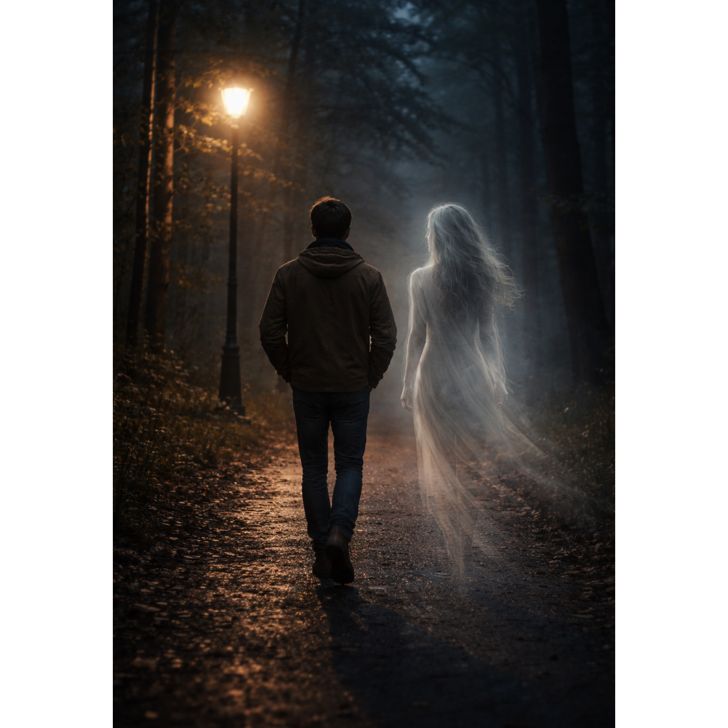 Folk acoustique indie, voix rauque masculine, guitare acoustique douce et piano léger, tempo lent, ambiance nocturne et intime, atmosphère contemplative et apaisante, inspirée par la marche silencieuse et la présence invisible, nappes sonores éthérées pour un effet mystique, émotion profonde et chaleureuse