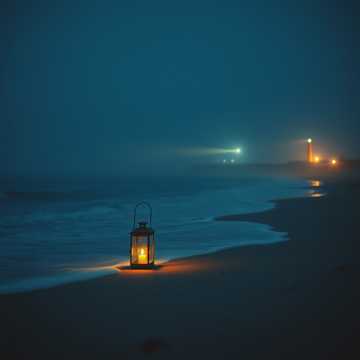 Folk atmosphérique maritime & contemplatif — Tempo très lent (~60–65 BPM), guitare acoustique douce et nappes aériennes, voix rauque et intime en solo, ambiance nocturne apaisante avec murmure du feu, vagues calmes et phare au loin en arrière-plan