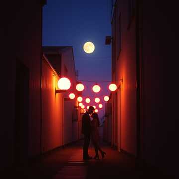 French indie pop / modern chanson française, soft romantic nocturnal atmosphere, Gentle female vocal, intimate and emotional, slightly breathy tone, close-mic singing, Tempo around 75 BPM, Soft acoustic guitar arpeggios and delicate piano as main instruments, warm round bass, minimal brushed drums, subtle atmospheric pads, light reverb electric guitar textures, Dreamy and cinematic night ambience, Tender and nostalgic mood, two people walking through a quiet city street at night under warm streetlights, talking, laughing like children, shy romantic tension as their hands softly brush, Verses intimate and storytelling, chorus more melodic and emotional, bridge very soft and minimal, Warm analog production, spacious mix, emotional and poetic feeling