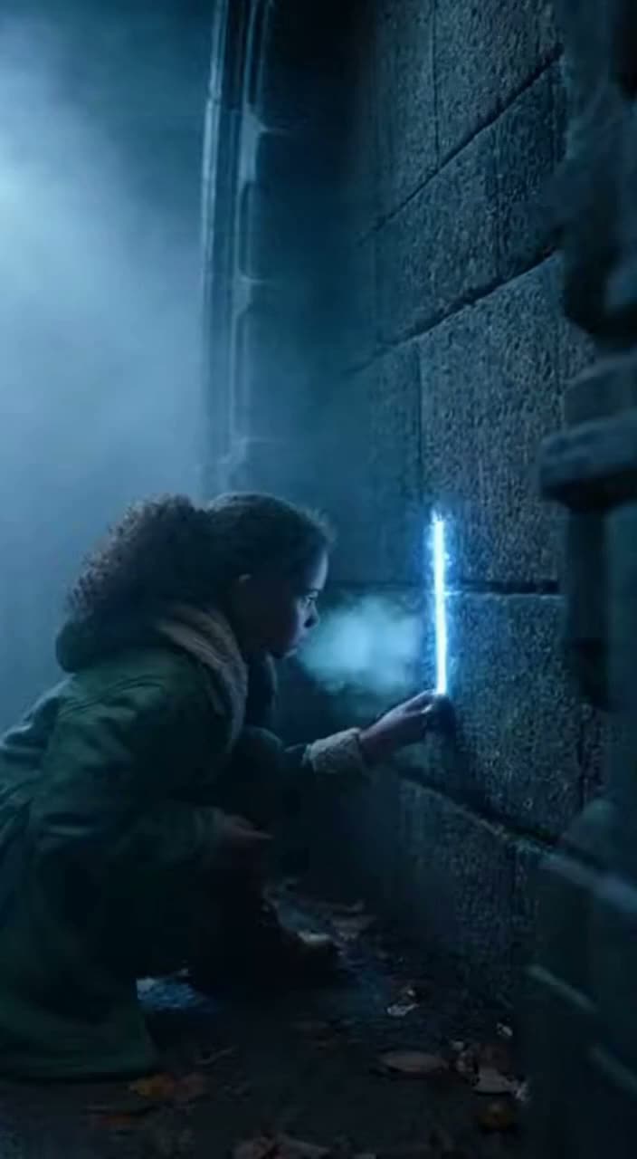 Mood: Whimsical yet grieving — a lullaby that knows too much, Instrumentation: Flute that curls like forest breath, harp plucked like secret footsteps, trembling strings, and a fragile music-box piano ticking like fate, Imagery: A child kneels before a cold stone wall and draws a door in chalk; the line glows, trembles, and opens into a world both wondrous and cruel, Shadows whisper her name, Fairies circle like sparks, Her soft voice carries the ache of innocence pressed against ancient truth — wonder wrapped in grief, Tone: Innocence tested by wonder — fairy magic written in blood, choices that carve childhood into legend
