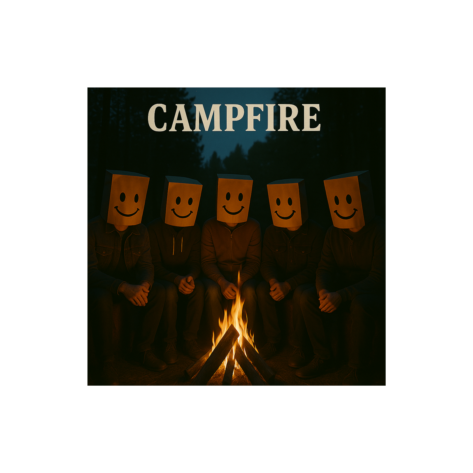 A raw and intimate acoustic campfire folk track featuring a warm, slightly raspy male vocal, accompanied only by an acoustic guitar, soft hand drums (like a cajón or djembe), and occasional clapping for rhythm, The tempo is steady and laid-back, evoking the relaxed energy of late-night conversations and songs shared under the stars, The guitar plays simple but heartfelt strumming patterns, while the percussion gently supports the groove without ever overpowering, The vocal delivery feels close and personal, like someone singing just for the people around the fire – authentic, emotional, and timeless