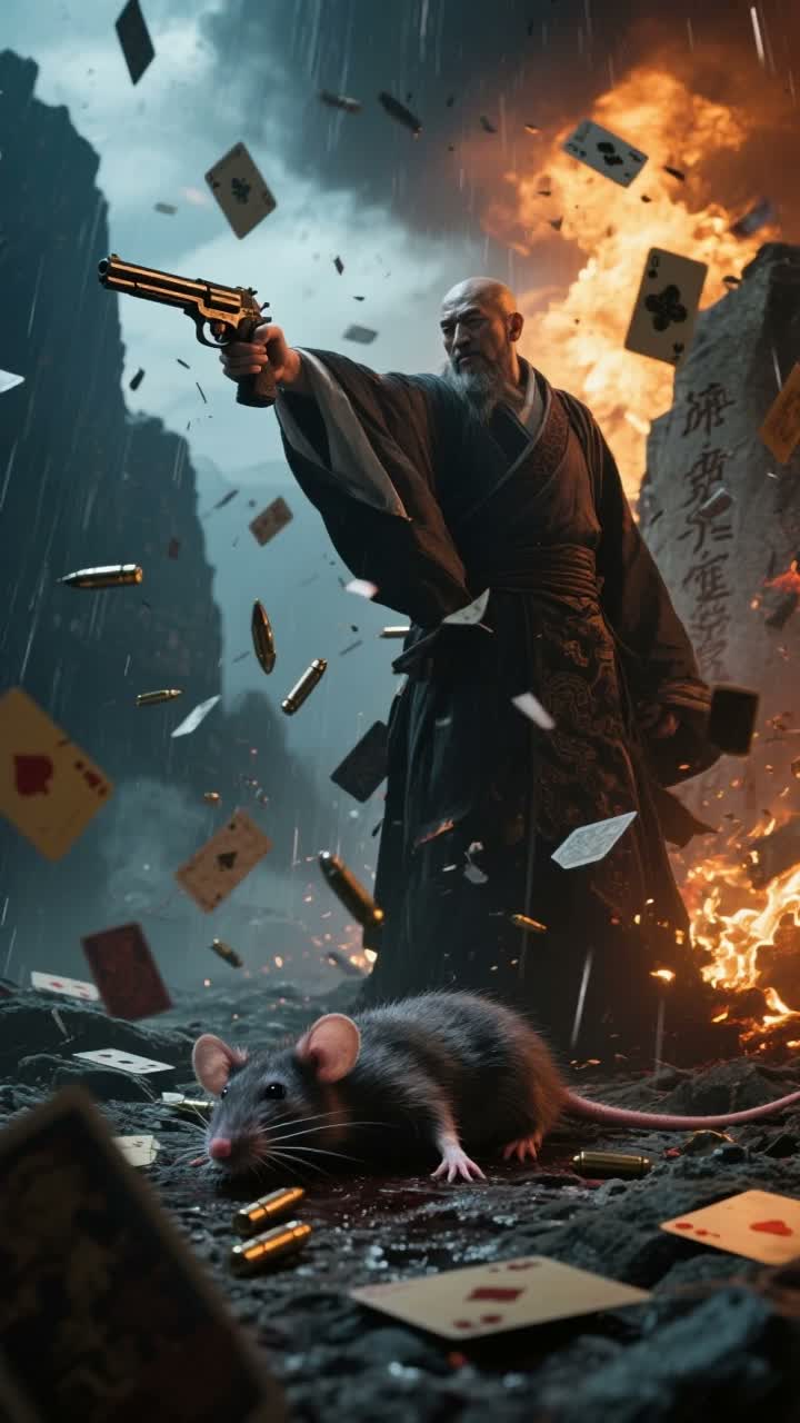 Dark ancient Chinese Wuxia style, Epic cinematic orchestral, haunting Shakuhachi, elegant Guqin, thunderous Taiko drums, Erhu solo, elegant male clean vocal, Standard Mandarin vocals, clear Mandarin pronunciation, chilling Peking opera elements on high notes, catchy explosive intro, immediate extreme impact, sudden beautiful melodic drop, captivating hook, Masterpiece, high-quality audio, lossless, Dolby Atmos, clear mixing, wide soundstage, immersive surround sound, dynamic range, multi-layered orchestration, tragic and heroic, poetic Chinese lyrics, irregular meter rhythm, traditional pentatonic scale, flawless mastering