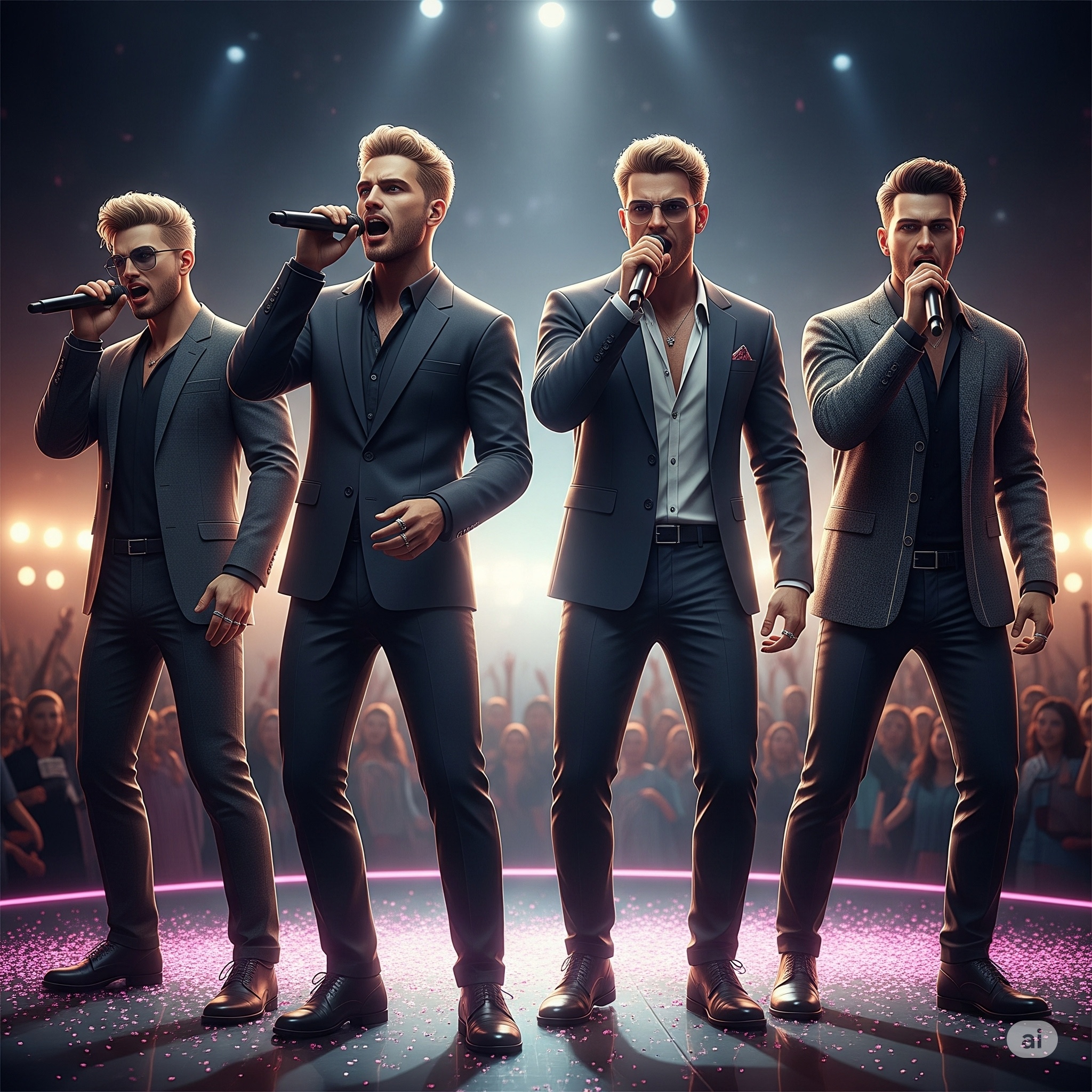 Create a 90s-style boyband pop song with rich vocal harmonies, heartfelt emotional lead vocals, and soft instrumental textures, Think Backstreet Boyss, NSYNcC, or Westlifee, The song should be upbeat yet sentimental, featuring layered group vocals in the chorus and individual leads in the verses, Use realistic male vocals with slight vocal runs, expressive phrasing, and dynamic shifts in emotion, Keep the instrumentation light with soft piano, acoustic guitar, subtle drums, and warm synth pads, Make sure the delivery feels very natural and heartfelt — like real singers in a real recording studio, Style: 1990s Pop Ballad / Boyband Pop