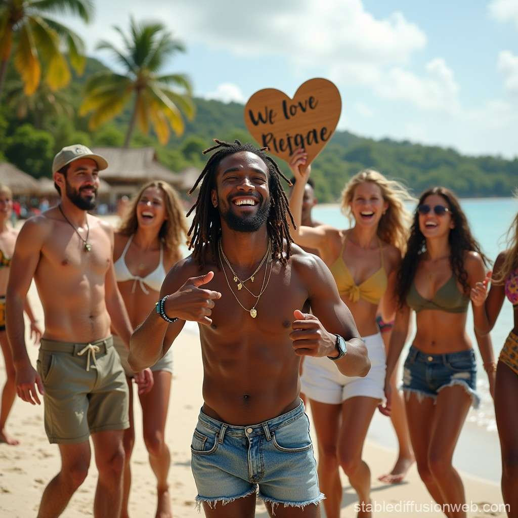 Beach, Slow reggae, africana man vocal, cheerful, theater, Large vocal performances that immerse, beach reggae