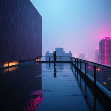 At 90 bpm, deep sub-bass underpins the groove while moody analog pads swirl above, A gritty VHS-style texture adds warmth and haze, evoking a rain-soaked rooftop, Sparse percussion and subtle trip-hop beats shape the pulse, with haunting female alto vocals as the focal point