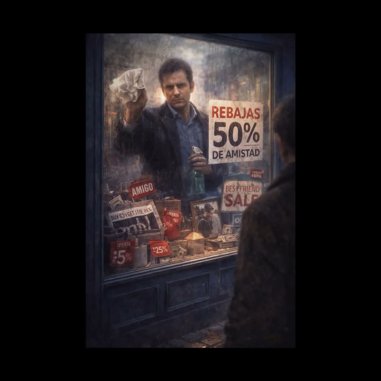 Spanish indie rock power elegía ballad with a mix of classic European rock and Spanish urban rock attitude, Emotional electric guitars with melodic leads and sustained solos, warm clean guitar arpeggios in the verses and powerful distorted guitars in the chorus, Solid rock drums and deep melodic bass, Male vocal deep, charismatic and slightly raspy, expressive and passionate but not overly dramatic, Atmosphere nostalgic and epic but grounded, combining the emotional feeling of a classic rock ballad with the swagger of Spanish rock, Dynamic build from soft intimate verses to powerful melodic choruses with soaring guitar lines, Tempo around 90–100 bpm