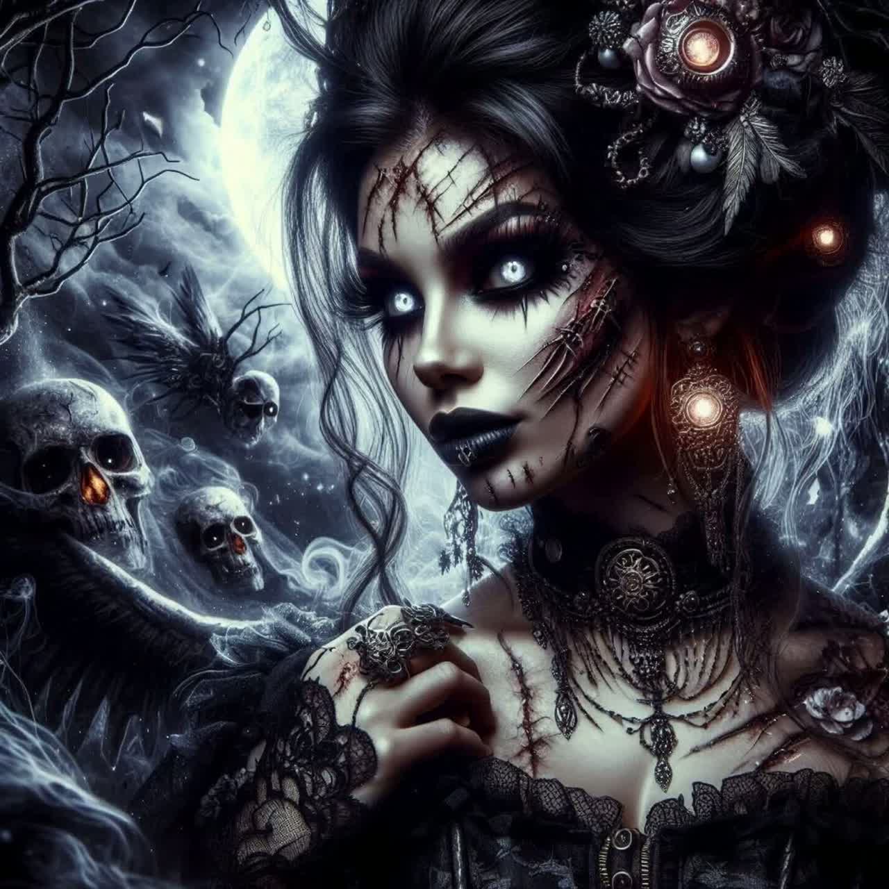 This track fuses doom metal, hard rock, and nu metal with thunderous, overdriven guitars and a pulse from the electric bass, The drums are punchy and relentless, driving a tempo faster than moderate, Keyboards weave dark textures, Deep, raspy female vocals alternate staccato delivery, snarls, and growls for a ferocious edge