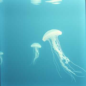 Ambient, flowing instrumental piece evoking a jellyfish drifting gracefully through water, Glass harmonica, bowed vibraphone, and soft synth pads create shimmering, translucent textures, High strings with long legato lines float above slow, airy drones, mimicking delicate pulsing and undulating motion, Tempo very slow, 40–60 BPM, with gentle swells and fades instead of rhythmic accents, Sparse, subtle harmonic shifts convey motion and depth, while glissandi suggest the undulating movement of tentacles, Mood: fragile, ethereal, hypnotic, weightless, serene, and otherworldly