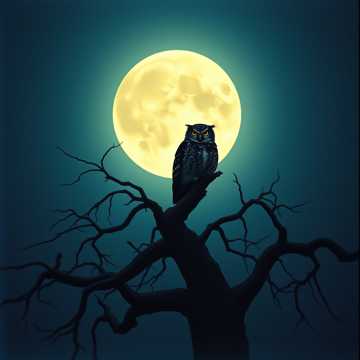 Instrumental nocturne evoking an owl in a moonlit forest, Sparse, mysterious atmosphere, Lead melodies in oboe and bass flute, floating over deep soft pads and subtle timpani rolls, Slow tempo, 60–70 BPM, Modal harmony with minor thirds and perfect fourths that echo like distant calls, Occasional pauses and reverberant space to suggest stillness, Gentle rustling textures, faint wind-like whispers, and soft percussive accents, but no harsh or busy sounds, Overall mood: quiet, watchful, nocturnal, slightly eerie but peaceful
